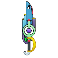 • Mega Tooth: Zub turns into a multicolored blaster and sword combination capable of shooting various bullet types and sizes, blasting red laser like energy, and also slashing opponents with the long sword like head. While designed for being handled, he can still move and float around by himself and attack as well.